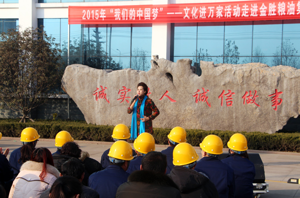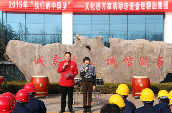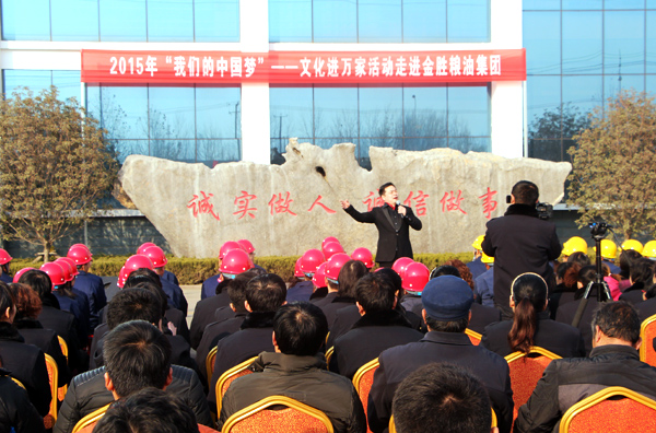 On December 24, 2014, your dreams and my dreams were strung together into a Chinese dream. With the Jinsheng family full of expectations, the 2015 "Our Chinese Dream"-Culture Entering Thousands of Homes event came to Jinsheng Cereals and Oils Group.