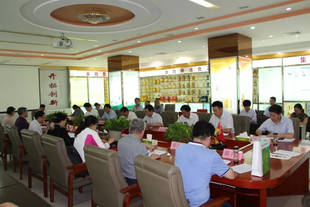 President Zhang and his party inspected the e-commerce building of Jinsheng Peanut Science and Technology Industrial Park, the Good Cereals and Oils Experience Center, the Group's Cultural Exhibition Hall, the R&D Center, etc., and listened in detail to Mr. Song's comments on Jinsheng Industrial Park planning, workshop layout, equipment technology, and the entire industry chain. Reports on series of featured products, cultural concepts, etc. At the symposium in the company's exhibition hall, we further learned about Jinsheng's development and the results achieved in the "Good Grain and Oil" action. At the meeting, President Zhang and other leaders affirmed Jin Sheng’s achievements in the “Good Grain and Oil” campaign and put forward many valuable opinions.