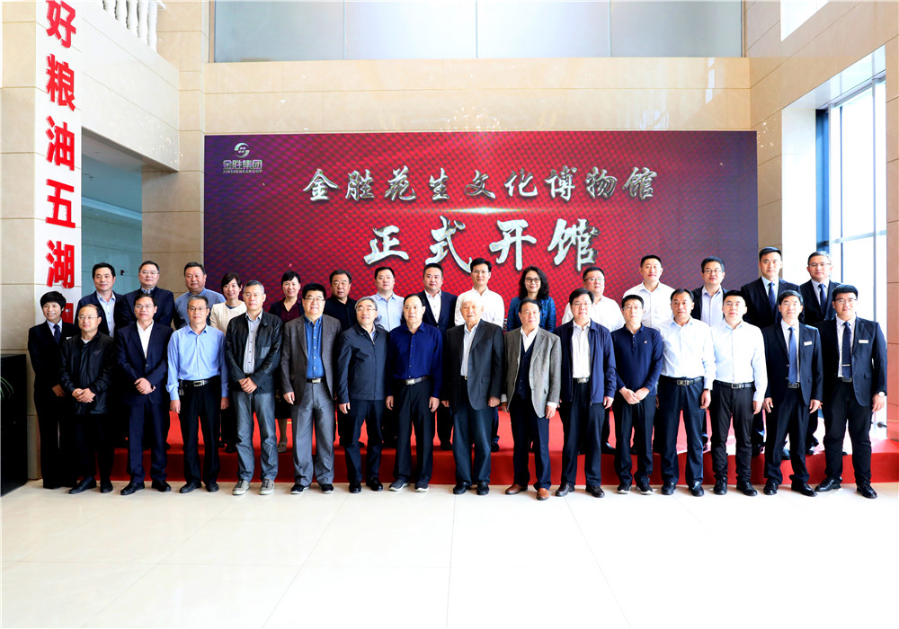• 市縣各級領導、行業專家與集團名譽董事長高鳳山、集團高管金勝花生文化博物館開館儀式合影