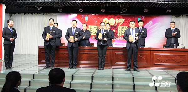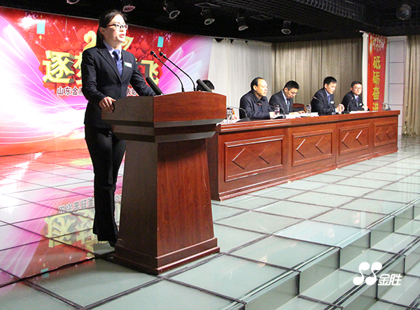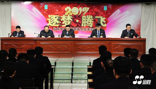 ? ? 2017年1月24日,金勝集團2016年度工作總結表彰大會在研發四樓會議室舉行,集團全員參加。會議由武玉波副總經理主持,高冠勇總經理、宋立里副總經理、崔言峰副總經理和四名先進代表先后做了發言。