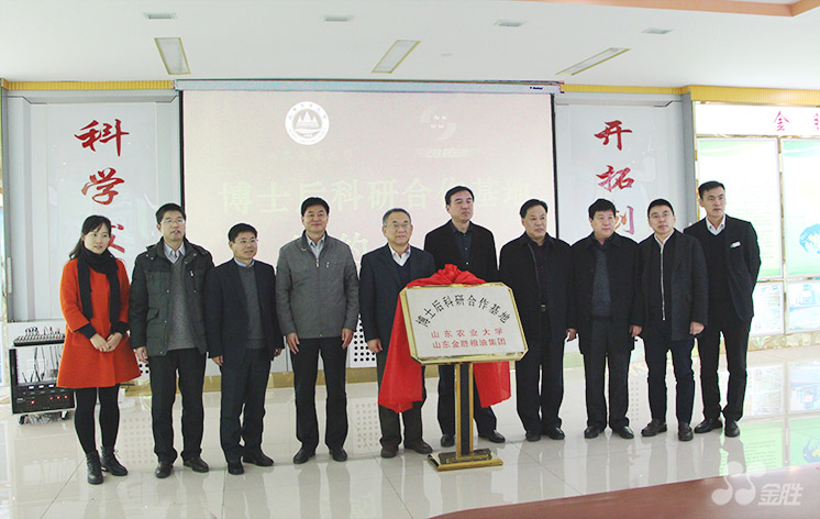 2016年11月22日上午,山東農業大學與山東金勝糧油集團聯合共建博士后科研合作基地簽約及揭牌儀式在金勝集團研發樓展廳隆重舉行。山東農業大學副校長、教授王振林,山東農業大學人事處副處長吳茂東,山東農業大學食品學院院長、教授喬旭光,縣委副書記張雷,縣委常委、常務副縣長李乃然,縣人社局局長、黨組書記韓昌利,縣人社局副局長、黨組成員莊建軍等領導和嘉賓出席了簽約儀式。