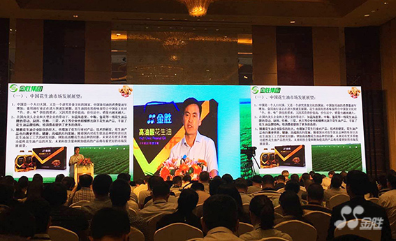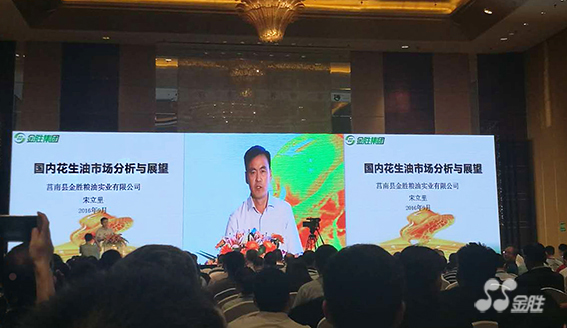 2016年9月8日,“2016中國國際花生年會暨花生博覽會”在山東青島香格里拉大酒店隆重召開。莒南縣金勝糧油實業有限公司宋立里總經理應主辦方邀請參加了本次大會,并在會上作了題為《國內花生油市場分析與展望》的專題報告。