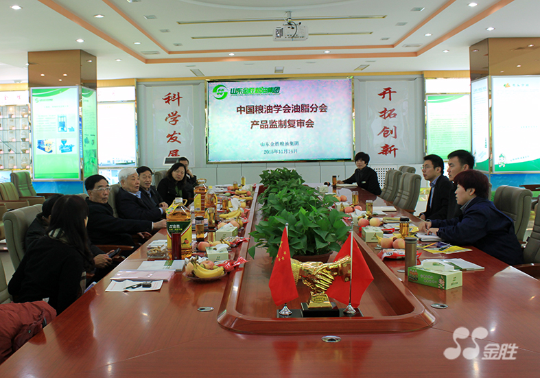 2015年11月14日,《金勝花生油——中國糧油學會油脂分會產品監制復審會》在山東金勝糧油集團研發大樓會議室舉行。出席本次復審會的有中國糧油學會油脂分會會長王瑞元,中國糧油學會常務副理事長兼秘書長胡承淼,中國糧油學會油脂分會副會長、武漢輕工大學何東平教授,中國糧油學會理事兼中國糧油學會油脂分會副會長、江南大學王興國教授,中國糧油學會油脂分會秘書長兼辦公室主任周麗鳳,中國糧油學會油脂分會專家組組長傅敦智,河南工業大學糧油食品學院油脂工程系劉玉蘭教授等專家。