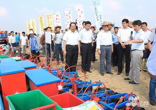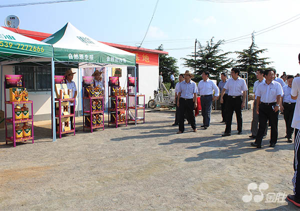 2015年09月16日,全國花生生產全程機械化現場演示會在金勝花生綠色生產基地成功召開。農業部農機化司副巡視員司孔亮、農業部農機推廣總站站長劉恒新、省農機局局長高明飛、市委常委、副市長尹長友,市政府應急辦主任張韜、市農機局長崔照通,縣委書記、縣人大委常會陳一兵,縣委副書記、縣長長趙西平,縣農機局、農業局等部門負責人及各鄉鎮分管農機工作的副鄉鎮長、農機站站長、支部書記代表、農機大戶代表等500余人蒞臨基地參觀考察。