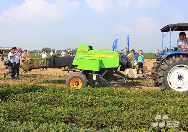 在金勝花生基地收獲現場,來自省內外的20余個花生機械生產廠家進行了現場作業演示。參觀人員詳細了解了各類機具的生產功能及技術指標,認真觀摩各類機具的演示情況,仔細查看了機械化收獲效果,對作業效果給予了高度評價。