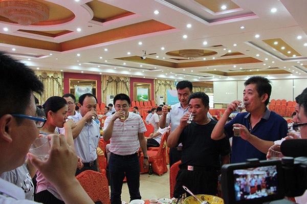 ? ? ???有朋自遠方來,不亦樂乎?此次的實地參觀從公司展廳、研發中心、生產車間、灌裝車間、花生示范基地,最后在金勝餐飲公司旗下的酒店品鑒特色菜,美酒佳肴、歌舞升平的同時,我們進行了深度的溝通和交流。相信此次活動是我們合作共贏,走向輝煌的新起點!