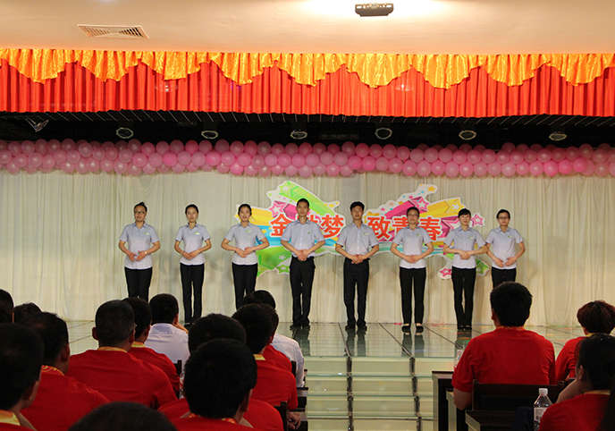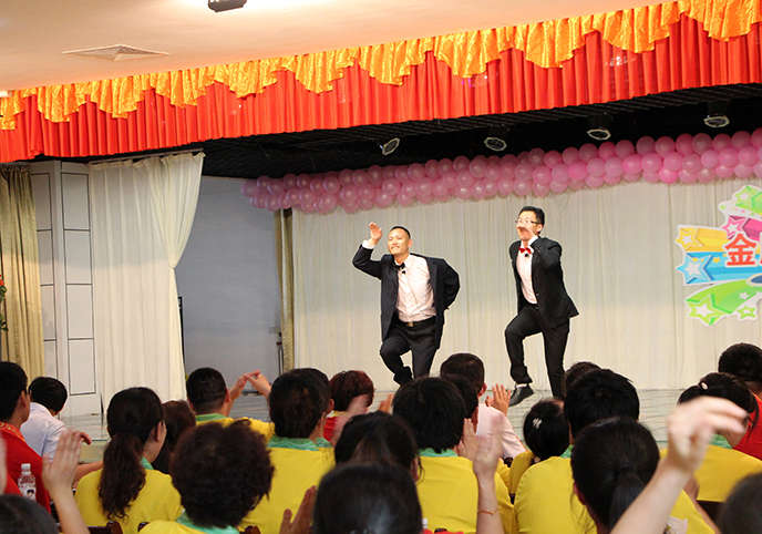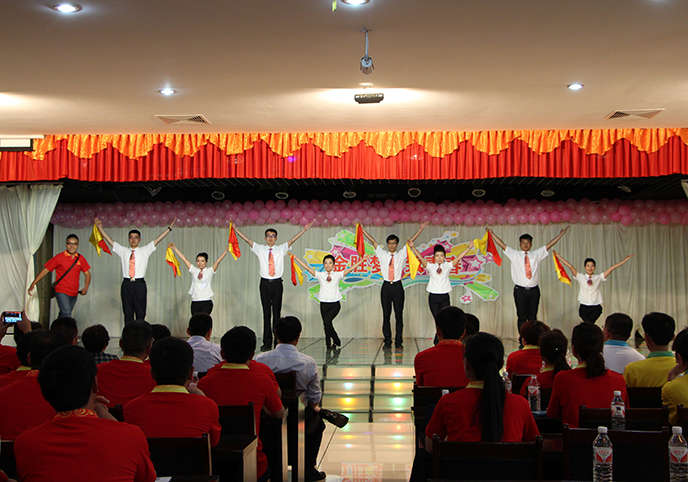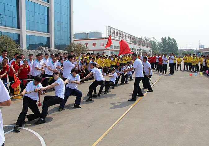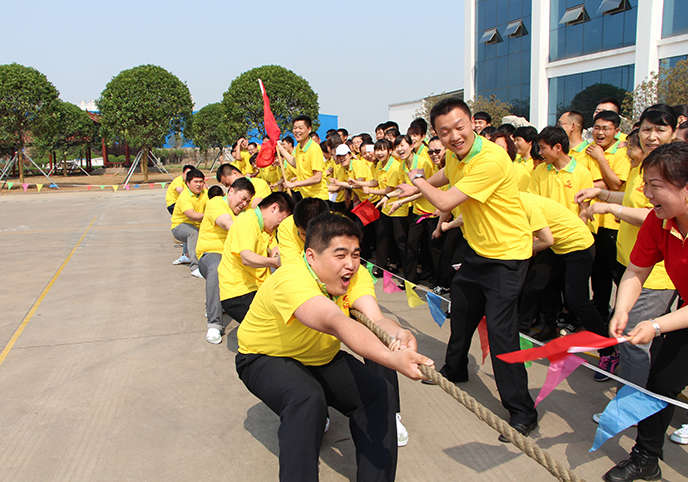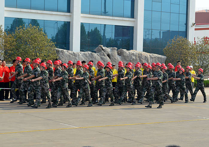 為豐富員工的精神生活,提高團隊士氣,增強向心力和凝聚力,2015年5月16日,山東金勝糧油集團組織了一場精彩紛呈的“金勝夢-致青春”文體比賽活動。本次活動上午各分隊進行了隊列軍訓、拔河比賽、大力士趣味比拼、消防安全練兵等項目,節奏緊湊、安排有序,在緊張激烈的氣氛中,各隊成員團結一致、奮力拼搏,各自在項目中都取得了良好的成績。下午文藝活動比賽,依次按照分隊進行了全體員工大合唱比賽、勵志晨操比賽,另有歌舞類、快板、相聲等節目,形式多樣、內容豐富、獎金豐厚,全體員工歡聚一堂,共享精神大餐。結束了一天緊張激烈的比賽,全體員工在金勝酒店宴會大廳共進晚餐,眾多員工踴躍上臺表演,現場氣氛活躍、高潮不斷。