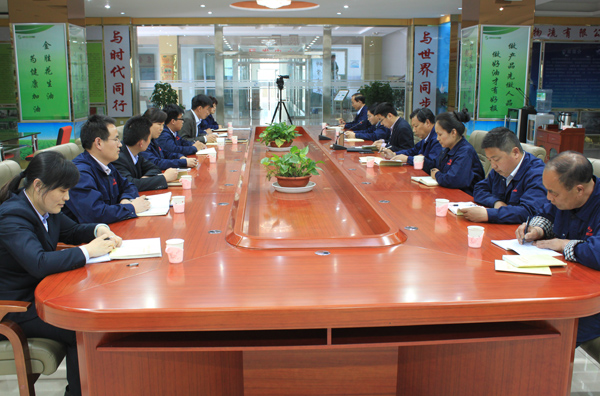 ??? 5月4日下午,金勝糧油全體黨員在集團展廳開展了群眾路線實踐活動學習的專題討論。