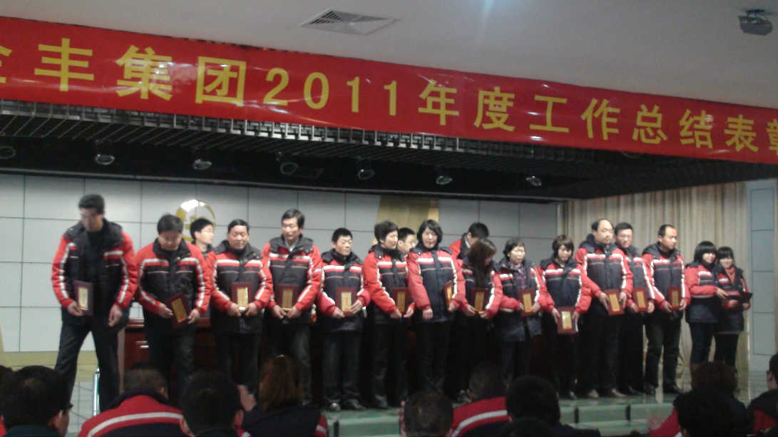 ??????2012年1月20日,山東金豐集團在公司禮堂召開了2011年度總結表彰大會,總結部署集團年度工作,表彰年度集團先進個人、先進單位,動員集團上下進一步認清形勢,以科學發展觀為指導,以提高發展質量和效益為核心,深化企業改革,調整優化結構,提升管理水平,堅定不移地推進集團快速發展、科學發展、和諧發展。過去的一年,全體干部職工團結一致,發揚“天天創新工作,事事追求卓越”的企業精神,抓住機遇,扎實苦干,各項工作都取得了顯著成績,取得了良好的經濟效益和社會效益,工業總產值同比增長19%,銷售收入同比增長18%,利稅同比增長10%,超額完成了年初制定的的目標任務。