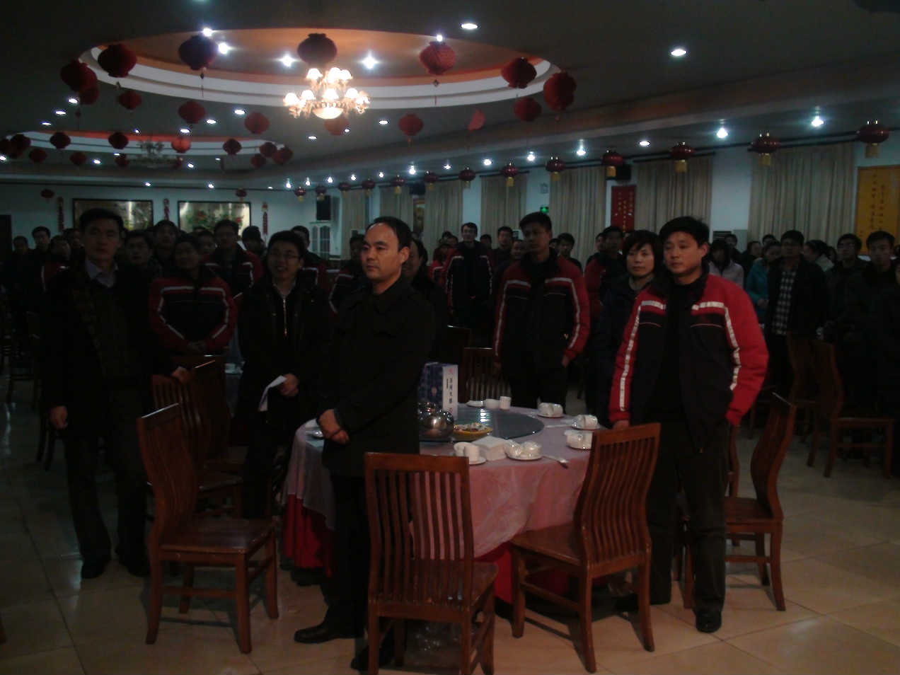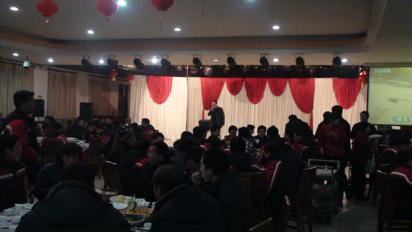 ??? 晚會開始后,全體員工起立,伴著激揚的旋律,齊唱《金豐之歌》,總經理致辭后,副總經理及十三個部門依次上臺表決并表演節目,整個過程緊湊有序,表決信心十足,表演精彩紛呈。董事長深情地演唱一首《父親》,感人至深,將晚會推向高潮,最后員工自由發揮,一個個爭先恐后,踴躍上臺,精彩表演。集團為員工準備了豐盛的晚宴,員工們一邊品嘗著美味佳肴,一邊欣賞著精彩的節目,沉浸在無比的快樂之中。