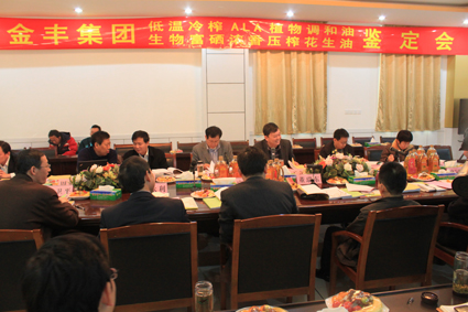 2011年11月20日,受山東省科技廳委托,臨沂市科技局組織相關專家對山東金豐集團有限公司和青島農業大學共同完成的“生物富硒濃香壓榨花生油的研制”和“低溫冷榨ALA植物調和油的研制”兩個項目進行了科技成果鑒定。與會的七位專家分別來自山東省花生研究所、山東輕工業學院、日照職業學院、山東省農業科學院、中國海洋大學。參加本次鑒定會的市縣領導有市科技局副局長董瑞東、市科技局成果科副科長黃衛平、副縣長徐寶宏、縣府辦公室副主任莫元宗、縣科技局局長王永利、縣科技局副局長徐淑嶺和縣局唐寬飛、李曉云兩位科長。由青島農業大學副院長孫慶杰教授代表金豐集團對兩個項目進行了匯報,與會專家聽取了課題組的匯報,審查了相關資料,通過質疑討論,形成鑒定意見如下: