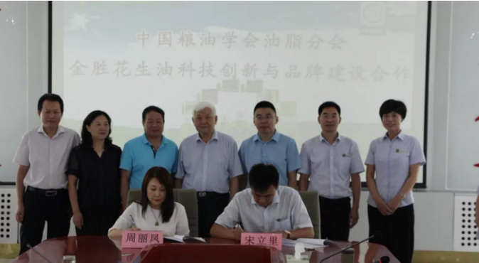 2018年8月25日,中國糧油學會油脂分會王瑞元會長、執行會長何東平、秘書長周麗鳳、副秘書長劉玉蘭、油料與油脂技術標準委員會秘書長張世宏來蒞臨金勝集團,共同簽署“中國糧油學會油脂分會科技創新與品牌建設戰略合作協議”,金勝集團總經理高冠勇、集團副總經理、金勝糧油食品公司總經理宋立里、集團副總經理崔言峰、研發中心主任陳寧及相關部門骨干參加會議。