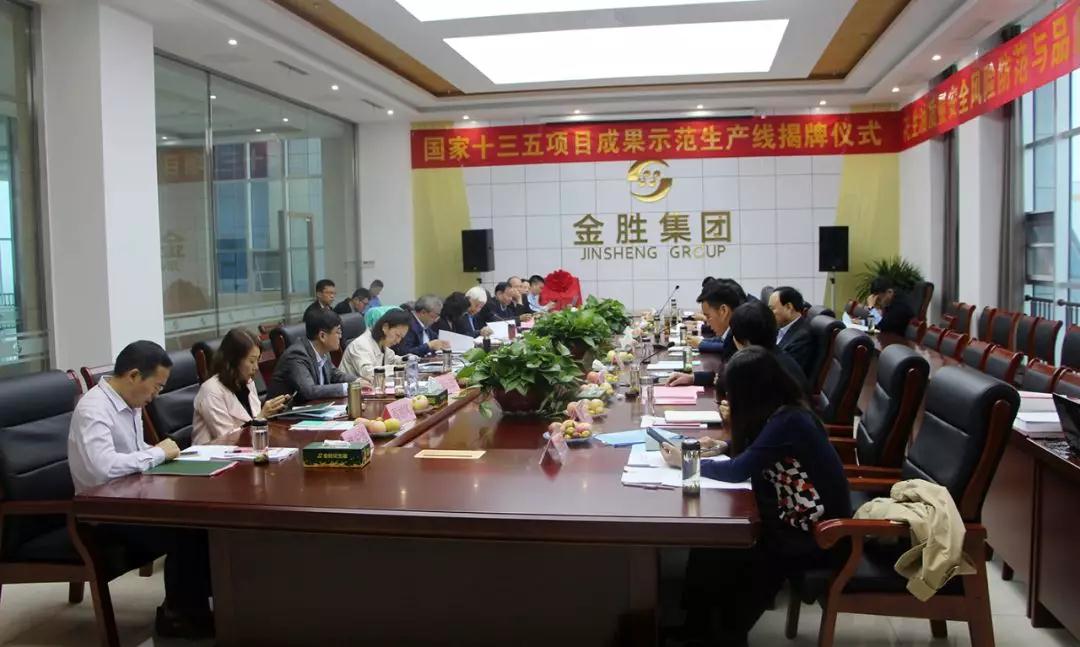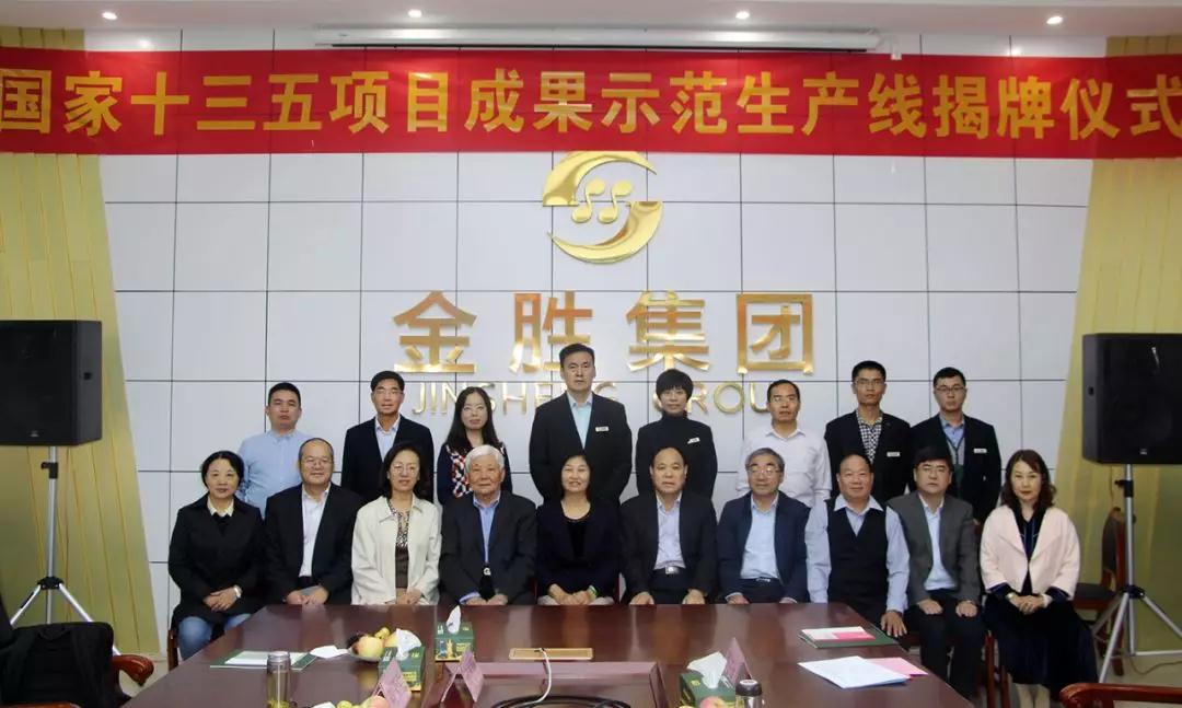 ? ? 領導專家一行先后參觀了金勝花生科技產業園電商大廈、研發中心、生產車間、體驗中心等地,金勝集團名譽董事長高鳳山,集團執行總經理、山東金勝糧油食品公司總經理宋立里,集團副總經理崔言峰,集團總經理助理、金勝營銷公司總經理鄒業飛,集團總經理助理、研發中心主任陳寧及有關骨干陪同參觀。領導一行詳細聽取了集團宋總關于金勝產業園規劃、車間布局、設備工藝、全產業鏈系列特色產品等方面的介紹,對金勝現場管理、科技投入、發展規劃給予高度評價。? ? ? 國家十三五項目成果示范生產線揭牌儀式在金勝花生科技產業園電商大廈三樓會議室隆重舉行。臨沂市科技局黨組成員、四級調研員劉鳴,莒南縣委副書記趙冰先后致辭。金勝集團執行總經理宋總匯報了公司情況,國家十三五項目首席劉元法教授致辭,與會領導專家共同為國家十三五項目成果示范生產線揭牌并合影留念。