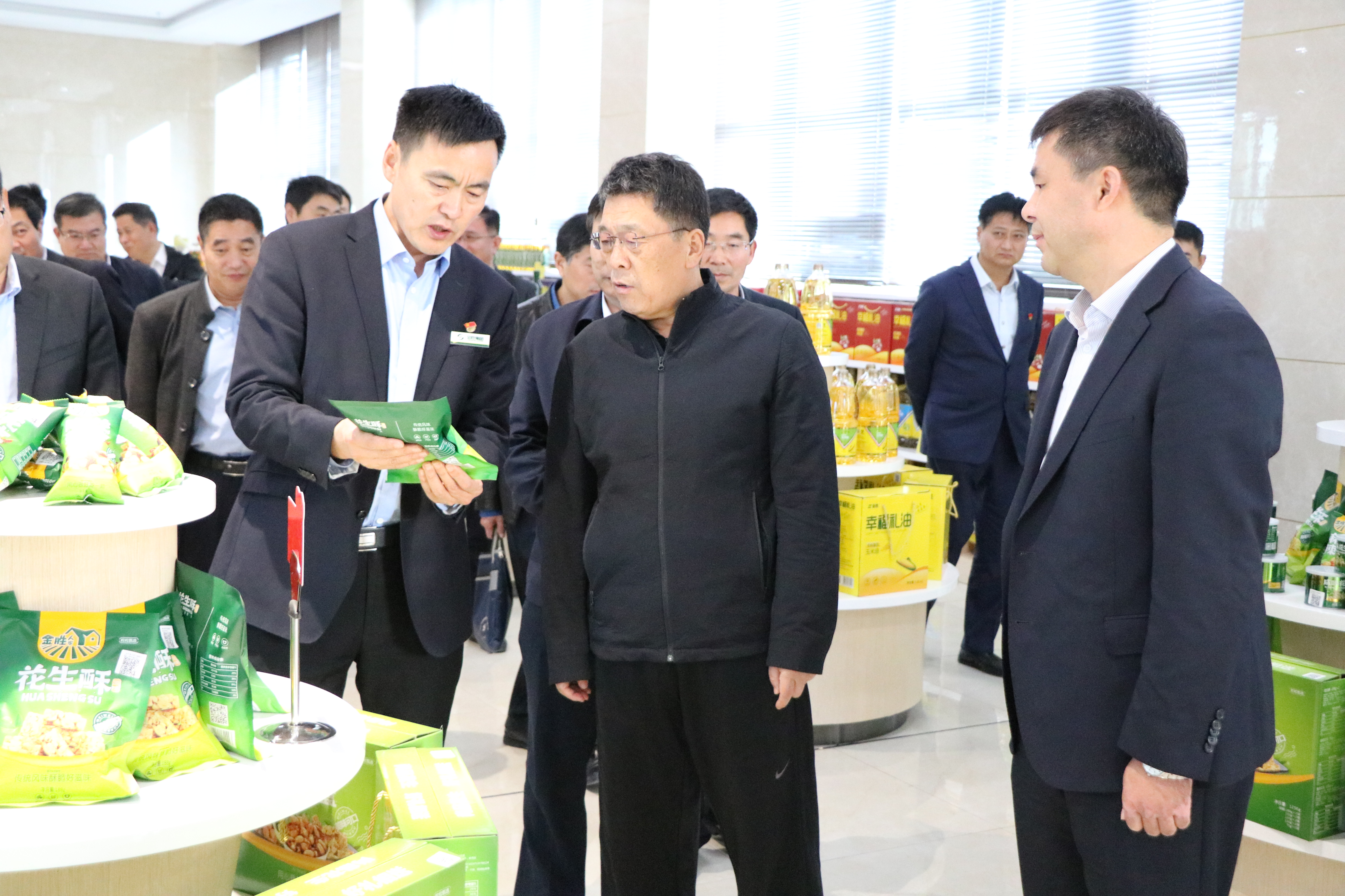 ? ? ? ? 王玉君書記一行實地查看了金勝花生文化博物館、電商交易中心、國家花生加工技術研發中心、年產60萬噸的高端花生油、特色植物油、花生制品及農特產食品加工流水線、倉儲量10萬噸的恒溫油庫及年產40萬噸全自動灌裝生產流水線等生產車間、產品展示和體驗中心。詳細聽取了集團執行總經理宋總的全面匯報,對金勝產業園的規劃設計、科技研發、生產現場管理、領先工藝設備、企業文化等方面給予高度評價,并勉勵企業在做大做強的同時,進一步加大企業品牌建設,強化品牌戰略。