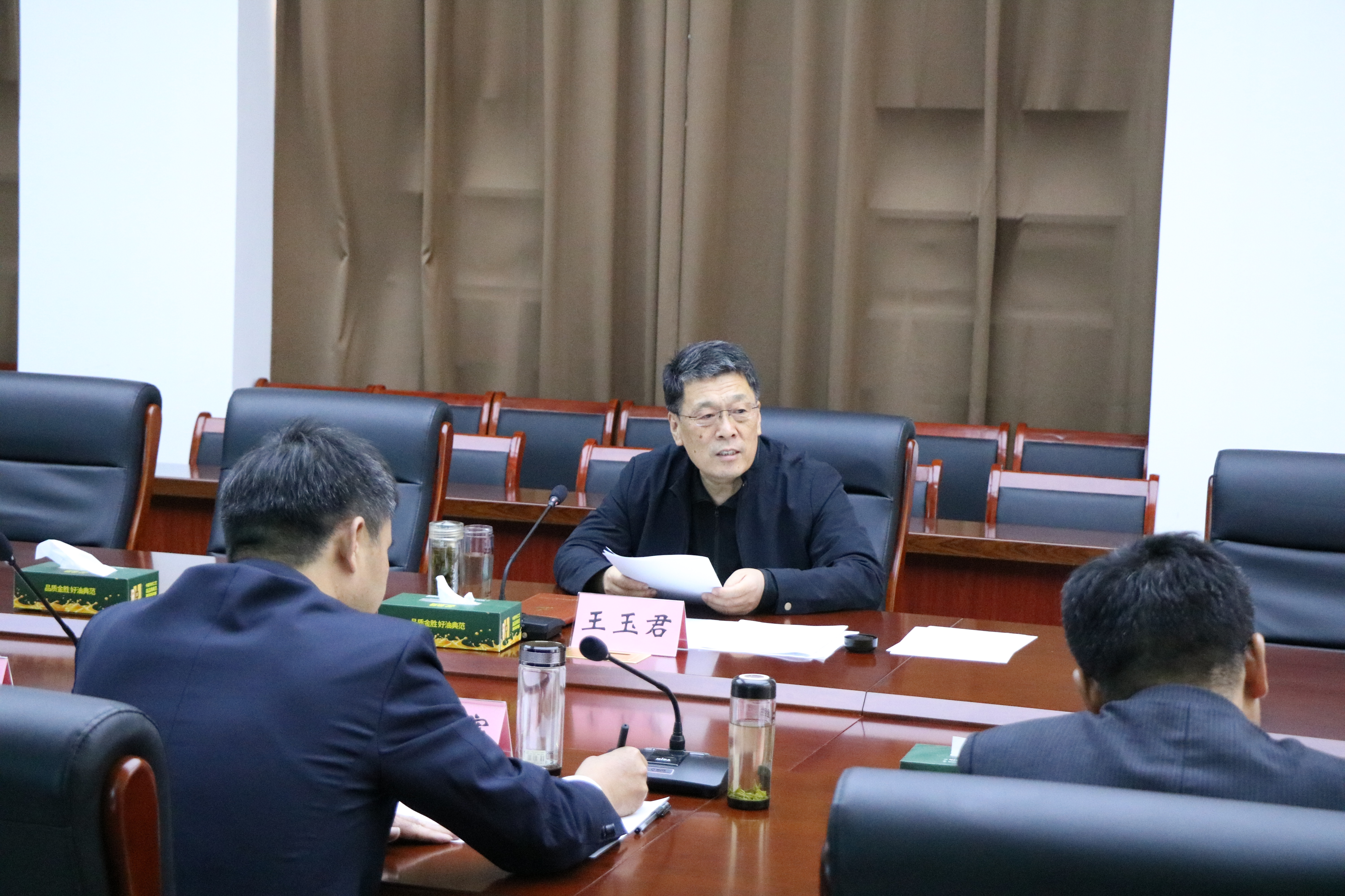 ? ? 現場觀摩后,王玉君書記一行在金勝集團三樓會議室舉行座談會。首先郇縣長匯報了莒南縣經濟社會發展情況,然后與會縣直部門負責人依次作了補充發言。最后,王玉君書記作重要講話。