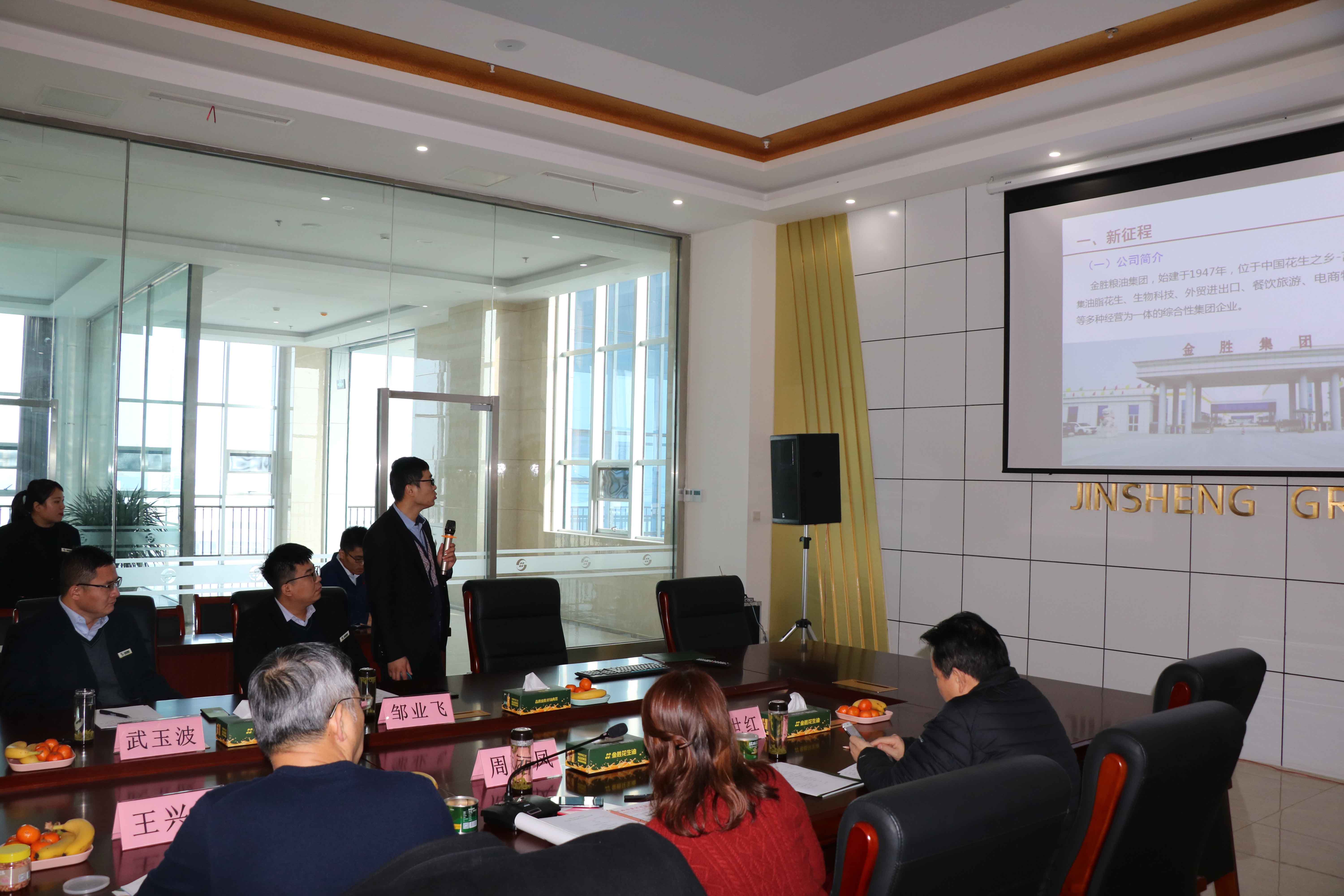 ? ? 現場觀摩后,在金勝集團三樓會議室舉行了座談會。會議由中國糧油學會油脂分會秘書長周麗鳳主持,作為東道主金勝集團宋總歡迎中國糧油學會油脂分會各位領導專家蒞臨金勝集團檢查指導工作,就金勝集團在項目建設和經濟效益方面所取得的成績向參會的各位專家領導進行了詳細的匯報。隨后集團研發中心費曉偉就企業在科技創新和品牌建設方面取得的成果和存在的技術難題進行了介紹。各位專家對金勝嶄新面貌給予了高度評價,針對金勝在發展中所遇到的問題進行了分析,并提出了具體的解決方案,為金勝今后的發展指明了方向。