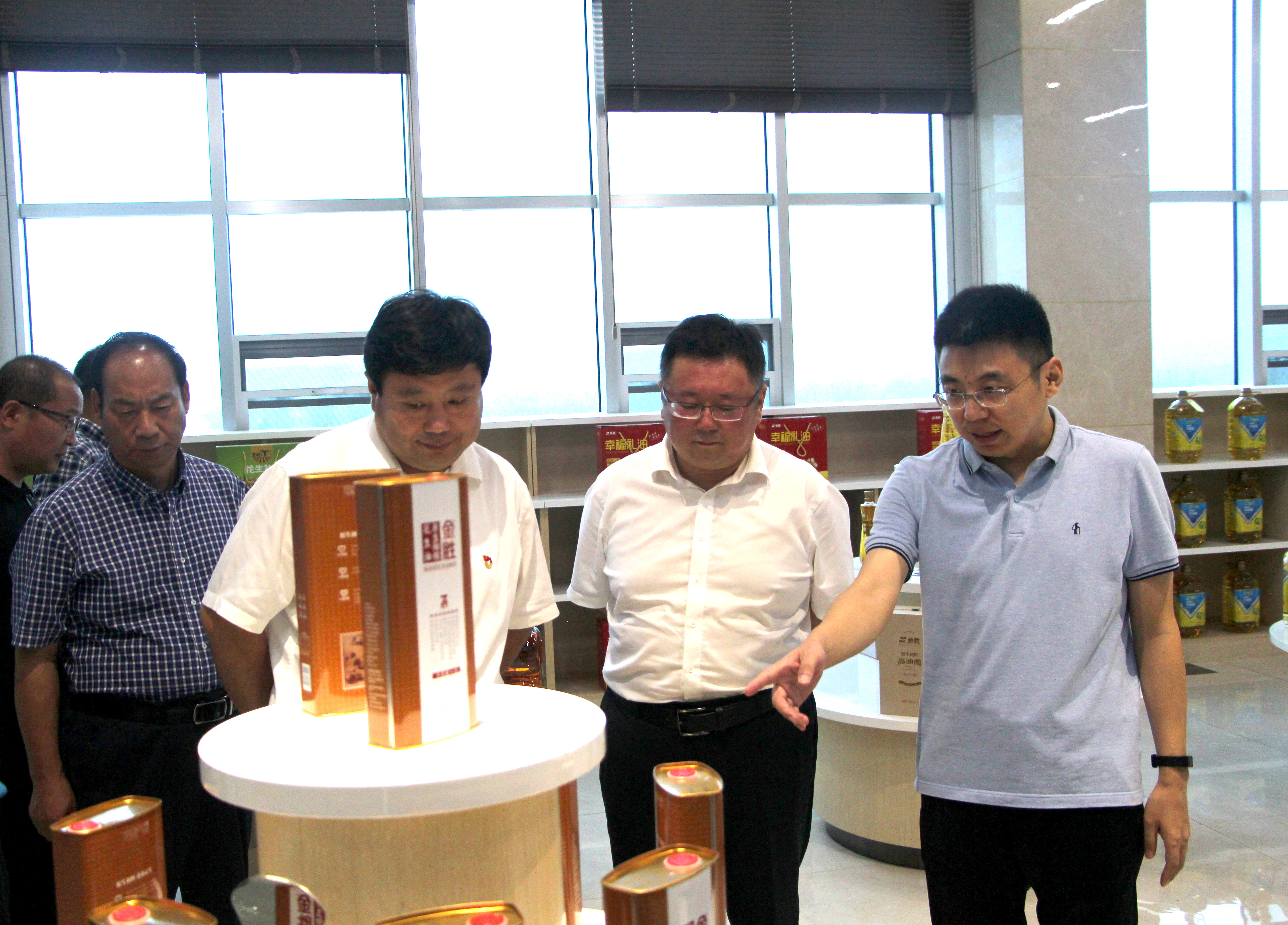 ? ? 王書記一行實地查看了金勝花生文化博物館、電商交易中心、國家花生加工技術研發中心、產品展示體驗中心及高端花生油、特色植物油、花生制品加工智慧工廠。詳細了解了集團在花生繁育種植、科技研發、加工貿易、技改升級、產業鏈延伸等方面的情況,對公司的現場管理、產學研合作、專利工藝及推動行業轉型升級和高質量發展等方面給予了高度評價。
